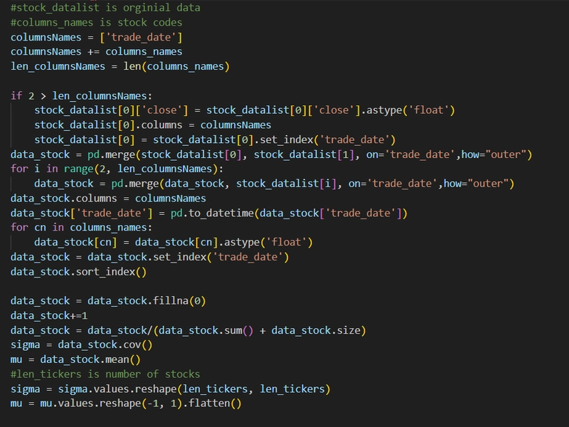 This section is designed for the technical reader which might have an interest in the code behind the creation of our portfolio segment. The first step of the analysis was to collect the relevant stock data. The sample raw data can be seen as follow: