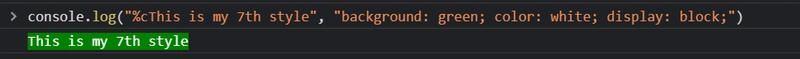 console.log("%cThis is my 7th style", "background: green; color: white; display: block;");