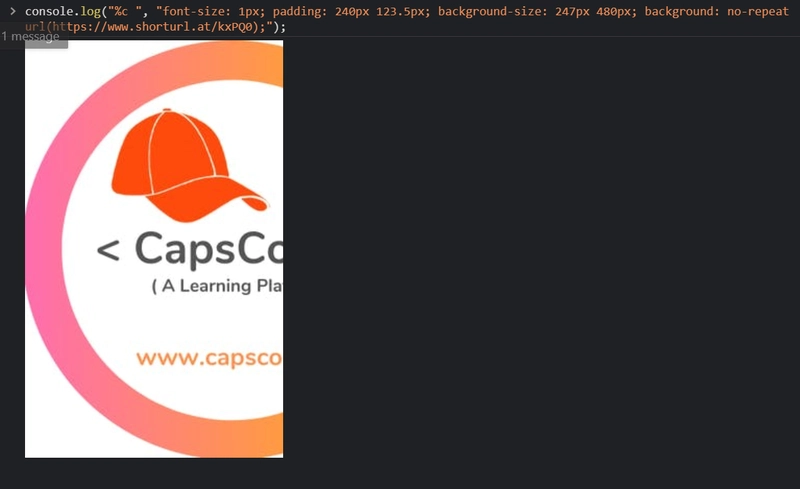 console.log("%c ", "font-size: 1px; padding: 166.5px 250px; background-size: 500px 333px; background: no-repeat url(https://www.capscode.in/static/media/cap.0d0af8f0.png);");