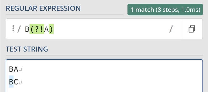 Likewise, we can switch this to a positive lookahead to enforce that our string must start with "Test"