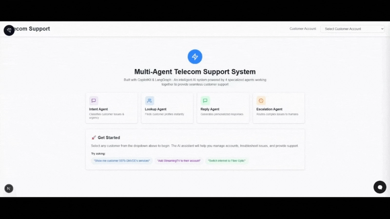 We’ll build a telecom support application with a chat interface that lets customers manage their services, update plans, check billing, and get instant help.