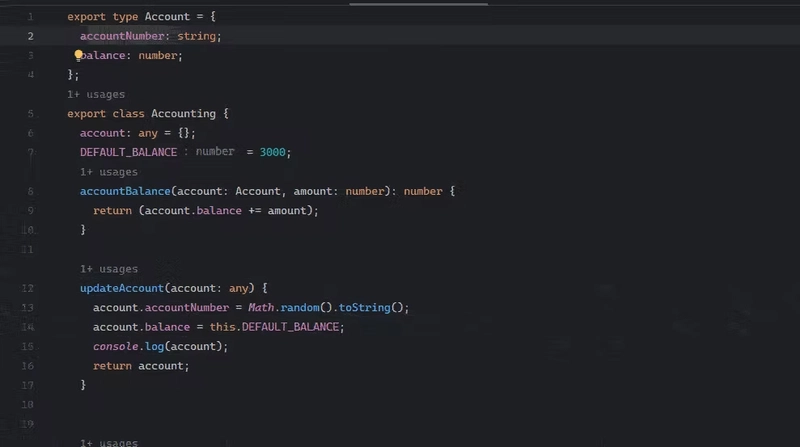 Consider the following code snippet, we have the accountBalance method which expects an account and amount to update the balance.