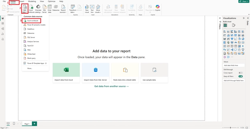 - Navigate to Home → Get Data → Excel
