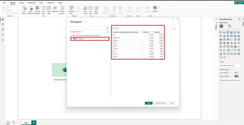 - Click Load (to import directly) or Transform Data (to clean first)