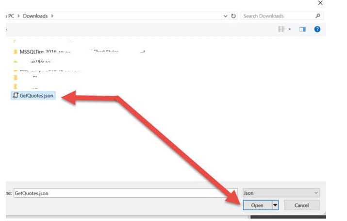 - Select the JSON file