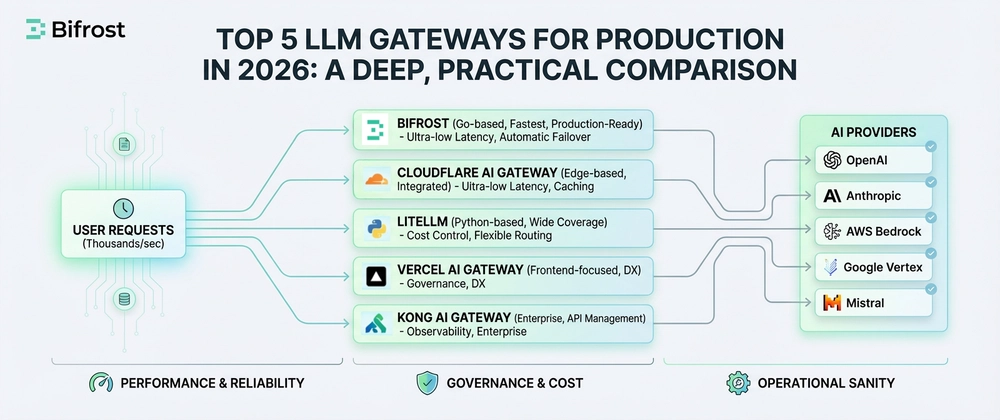 This article breaks down the Top 5 LLM gateways used in production today, based on real-world engineering concerns: performance, reliability, governance, cost control, and operational sanity.