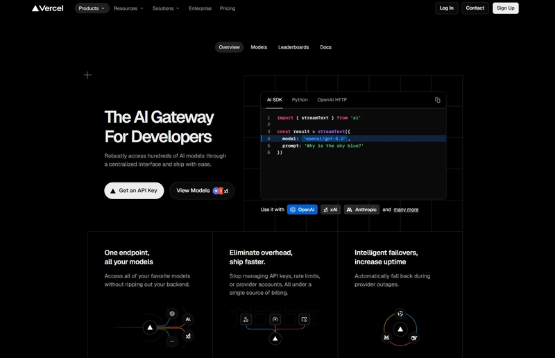 Vercel AI Gateway is designed for teams building user-facing AI features with modern web frameworks. Optimized for Developer Experience.