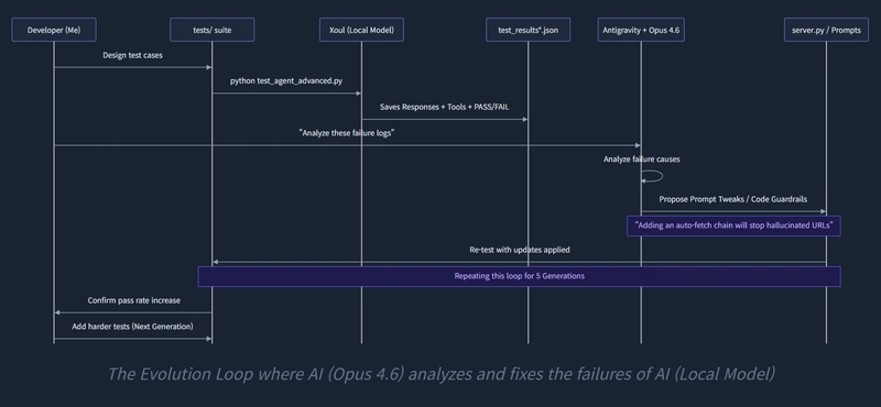 This is the most important realization of this entire project: Local models are simply not enough on their own right now. But if you create a loop where a larger AI analyzes the failures of a smaller AI and actively implements improvements, even local models can be elevated to a highly usable state. An era where AI develops AI. I believe this isn't just a fun story about my weekend project; it's the exact pattern of how all local AI agents will evolve moving forward.