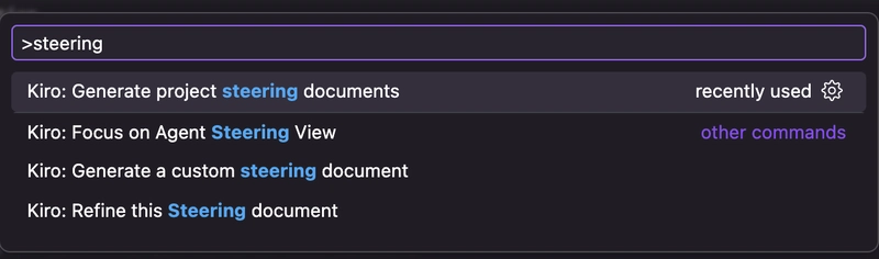 One of Kiro's most powerful features is Agent Steering - the ability to guide Kiro's behavior for your specific project. When you run "Kiro: Setup Steering for Project" from the command palette, three steering files are created: