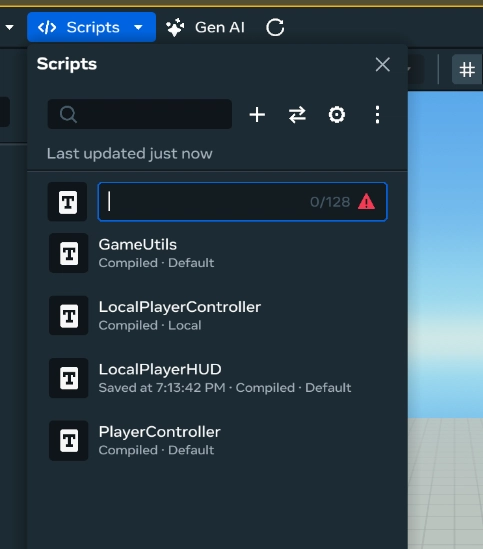 Next create a new script called LocalPlayerHUD and attach it to your LocalPlayerHUD1 object. Remember to make the script local!