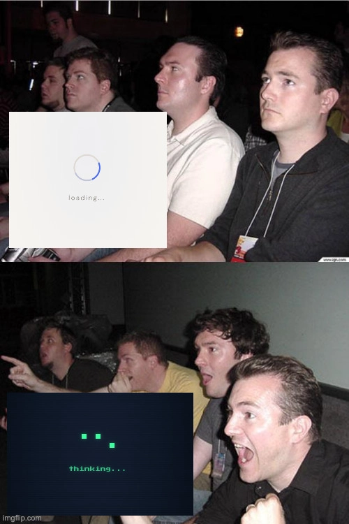 Manuel Artero Anguita π¨ Posted on Feb 20 "loading..." vs. "thinking..." #ai #jokes #watercooler loading..." -> Boring, Classic server, Outdated. vs. "thinking..." -> AI-Powered, 12 agents, 40M investment, Orchestrated System with Collaborative Agents. Top comments (0) Subscribe Personal Trusted User Create template Templates let you quickly answer FAQs or store snippets for re-use. Submit Preview Dismiss Code of Conduct • Report abuse Are you sure you want to hide this comment? It will become hidden in your post, but will still be visible via the comment's permalink. Hide child comments as well Confirm For further actions, you may consider blocking this person and/or reporting abuse