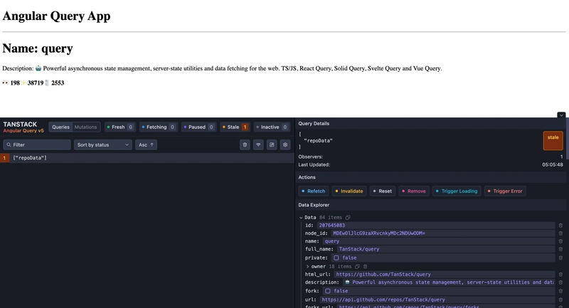 - It incorporates Angular Query devtools for debugging and inspection.