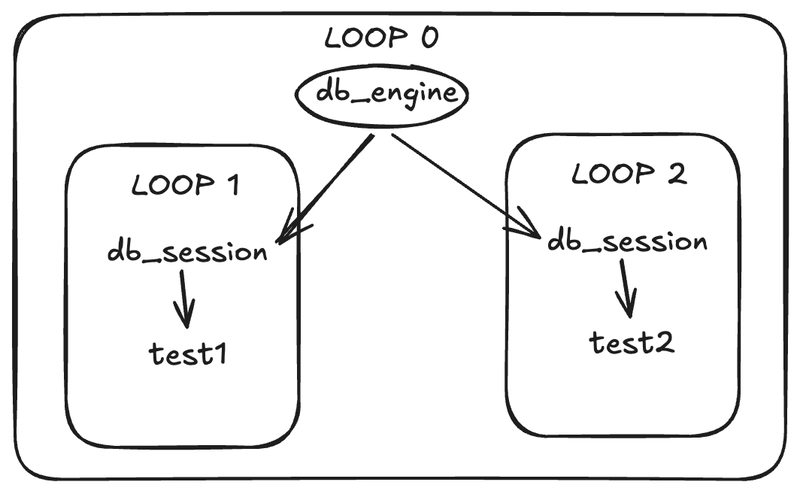 Now you might try full isolation, making db_engine fixture a function loop scope so it looks somethign like this.