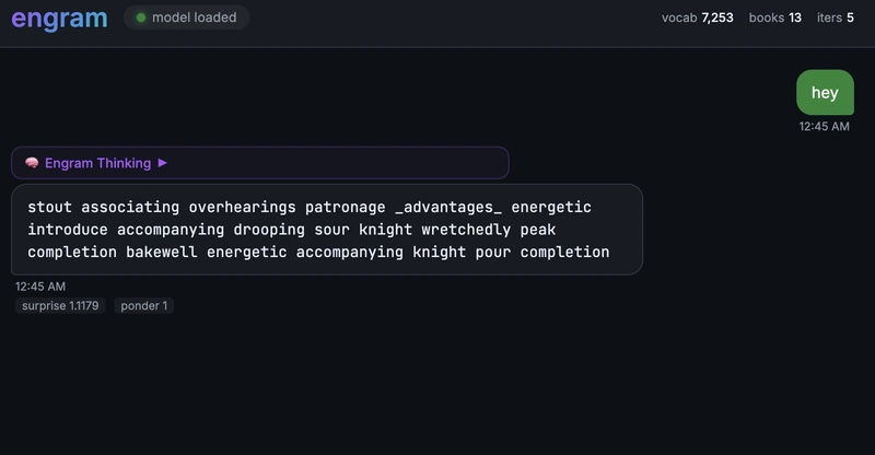 That 'word salad' frustration pushing for agentic reasoning at training time is so relatable. Deepseek's paper aligning with your Engram concept is wild! For training, are you exploring ways to explicitly penalize incoherent internal states or reasoning steps between layers?