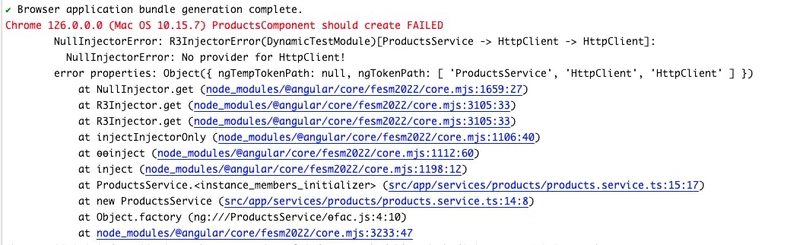 NullInjectorError: R3InjectorError(DynamicTestModule)[ProductsService -> HttpClient -> HttpClient]: