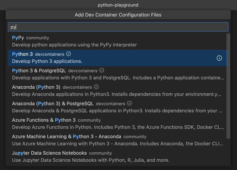 Dev Containers: Add Dev Container Configuration Files...