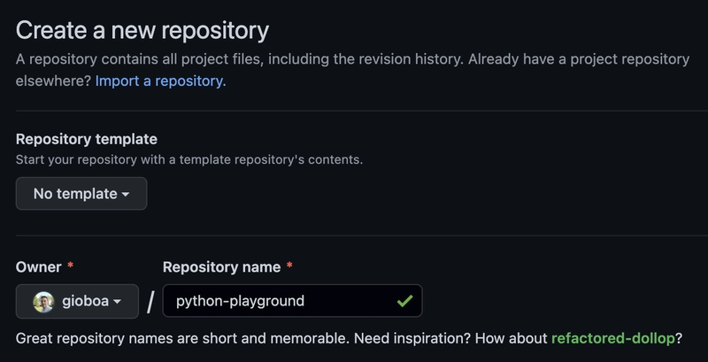I started by creating my repository on GitHub and I named it python-playground.
