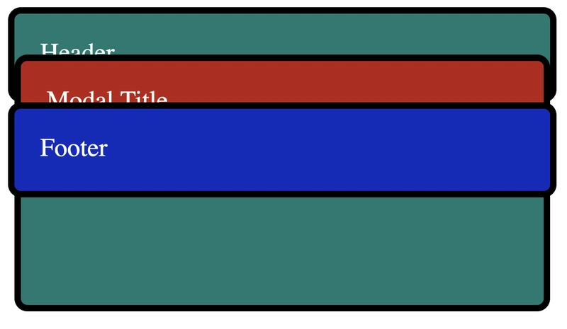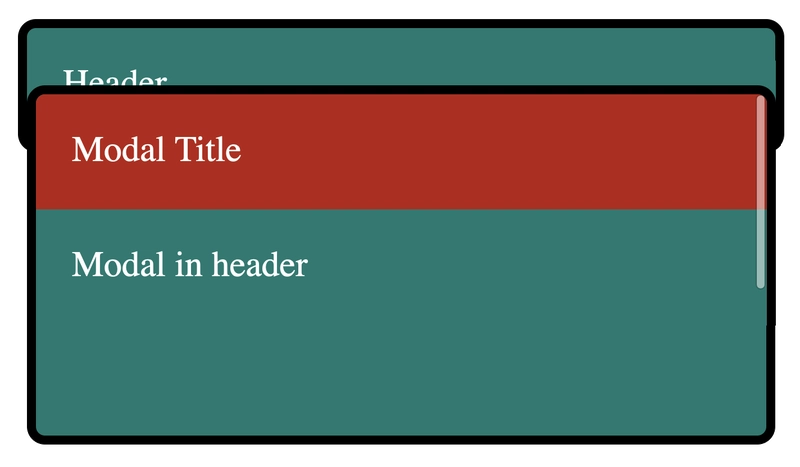 However, if we remove the footer temporarily, we can see a modal rendering on top of the header as expected: