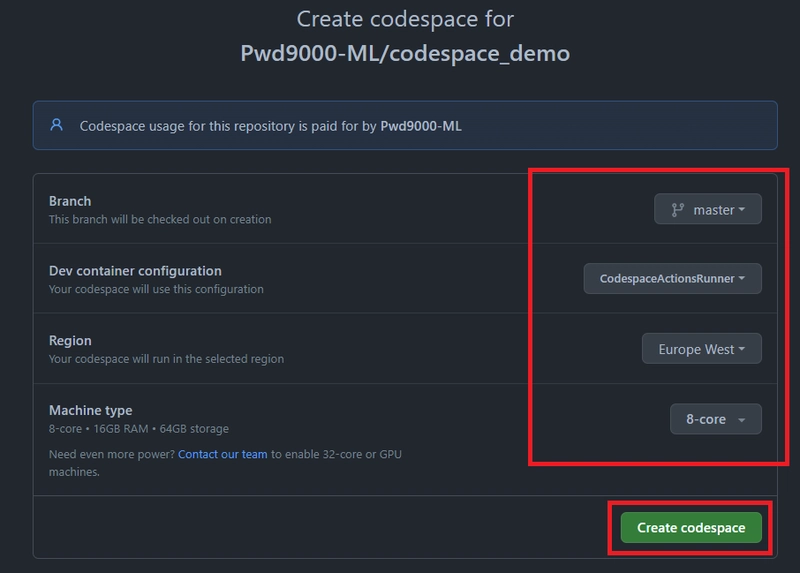 - Add Codespace secrets on the GitHub repository where the Codespace is to be spun up