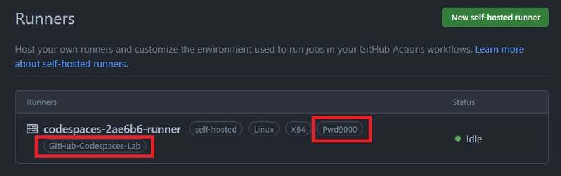 Self hosted GitHub Actions runner registers and runs inside Codespace at launch