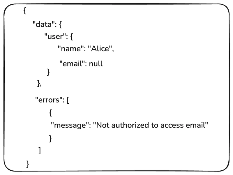 However, GraphQL behaves slightly differently. Even if some fields in a query fail, the server may still return: