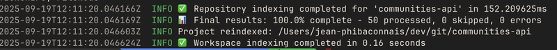 π The gkg index command launches a scan of your project. This action was quick for this project.